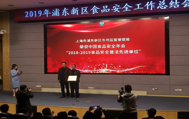 上海浦東新區(qū)市場(chǎng)監(jiān)管局榮獲“2018-2019食品安全普法先進(jìn)單位”