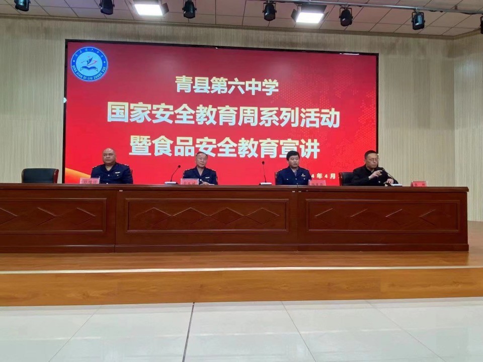 工作人員在青縣第六中學(xué)報告廳開展食品安全宣講 圖片來源:青縣市場監(jiān)管局