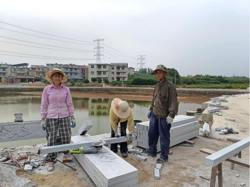 行走在蘆湖村,盧忠日用紅磚壘筑的“長城”景觀墻,象征著蘆湖人自強(qiáng)不息的奮斗精神和愛國情懷;用青瓦構(gòu)造的“孔方兄”,寓意著村民“錢袋子”鼓了,幸福感強(qiáng)了。