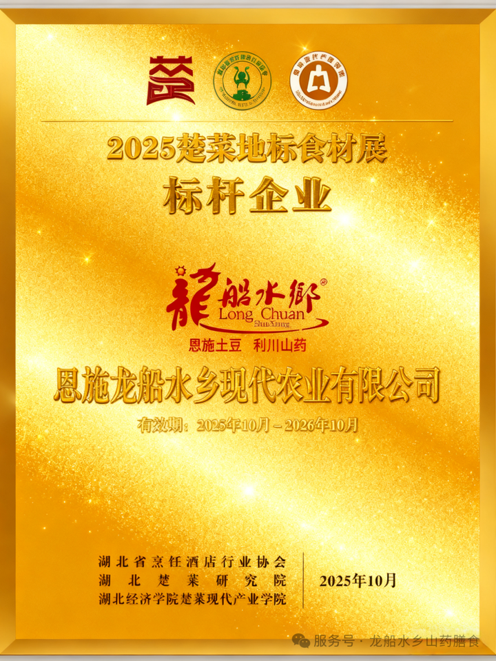 這一榮譽不僅是對恩施龍船水鄉(xiāng)長期致力于地標食材開發(fā)與品質(zhì)堅持的高度認可,更是其產(chǎn)品躋身楚菜優(yōu)質(zhì)食材標桿行列的權(quán)威證明。