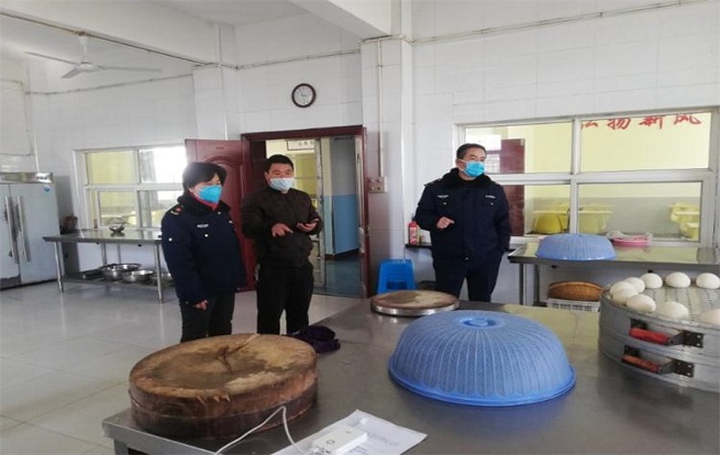 咸陽市禮泉縣市場監(jiān)管理局執(zhí)法人員要求,各單位食堂要做到,每天就餐場所消毒不少于兩次,從業(yè)人員及就餐人員佩戴口罩,測量體溫,排隊打餐及就餐間隔在1.5米以上,提倡分批分次就餐。加強食材的購進驗收和索證索票管理,從業(yè)人員的培訓及管理,嚴格按照《餐飲服務操作規(guī)范》進行。并對檢查中發(fā)現(xiàn)做法進行推廣。如咸陽東方雨虹防水材料有限公司和陜西統(tǒng)一企業(yè)有限公司在入口設(shè)置腳踩消毒池,手部酒精消毒,陜西統(tǒng)一企業(yè)有限公司設(shè)置排隊警示標志,餐桌設(shè)置專門懸掛口罩的小掛鉤,海螺水泥餐廳設(shè)置疫情舉報箱,海螺水泥和東方雨虹公司對外地返工人員劃定專門宿舍樓隔離14天等。