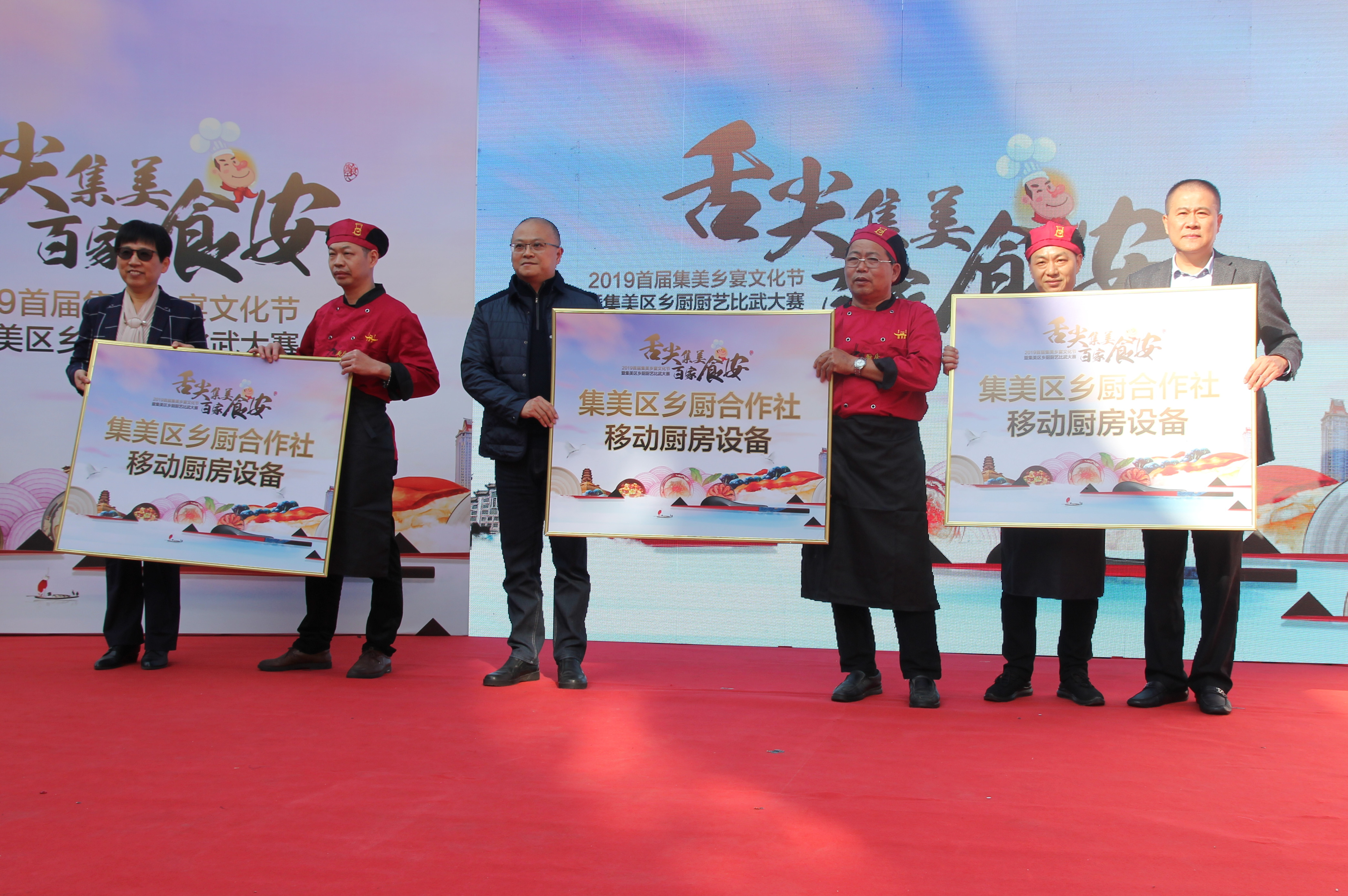 ????此次活動,以“舌尖集美,百家食安”為主題,旨在進一步推進國家食品安全示范城市創(chuàng)建工作,加大食品安全宣傳力度,規(guī)范鄉(xiāng)宴操作規(guī)范,筑牢鄉(xiāng)宴食品安全第一線,打造集美區(qū)“鄉(xiāng)廚合作社”品牌,傳承弘揚閩南風俗文化,助力鄉(xiāng)村振興。活動現(xiàn)場,由政府出資30萬元購置的3套專門用于農(nóng)村集體聚餐的移動廚房設備及工具正式移交鄉(xiāng)廚合作社。大賽期間,由集美鄉(xiāng)廚合作社、媒體及各鎮(zhèn)街推選的6位鄉(xiāng)廚大師,在報備、采購、檢查、備菜、烹制過程中,嚴格按照操作規(guī)程,完成食材準備、菜肴烹制、食品留樣等,食安網(wǎng)格員全程跟蹤監(jiān)督,食安快檢車現(xiàn)場開展食材快檢快測,筑牢鄉(xiāng)宴食品安全第一線。