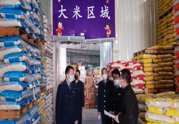 圖為執(zhí)法人員檢查糧油批發(fā)店