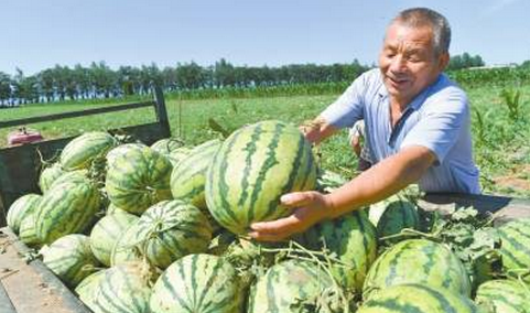 ????7月1日,洛陽市洛寧縣小界鄉(xiāng)徐村農(nóng)民范安忠在采摘旱地西瓜。洛寧縣地處豫西山區(qū),干旱少雨。近年來,該縣因地制宜發(fā)展旱地西瓜,西瓜種植面積達1萬余畝。旱地西瓜含糖量高,賣價高,為農(nóng)民增收拓展了新途徑。(楊遠高?李峰)