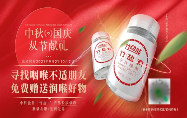 據(jù)了解,此次活動(dòng)將從中秋節(jié)(9月21日)開(kāi)啟,并一直延續(xù)至國(guó)慶節(jié)假期(10月7日)結(jié)束,活動(dòng)通過(guò)線上“綠馬俱樂(lè)部”微信小程序舉行。自9月18日起新注冊(cè)會(huì)員,以及屬本次關(guān)懷的人群均可掃描二維掃碼添加小程序免費(fèi)領(lǐng)取“竹動(dòng)能竹鹽丸壓片糖果1瓶”或“竹動(dòng)能九烤竹鹽瞬順飲1盒”。