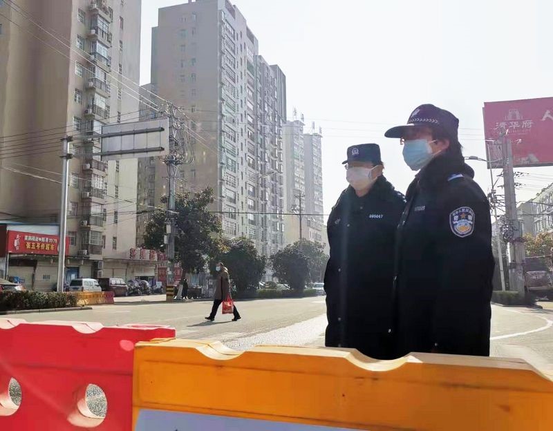 嚴(yán)麗(右一)在疫情一線執(zhí)勤