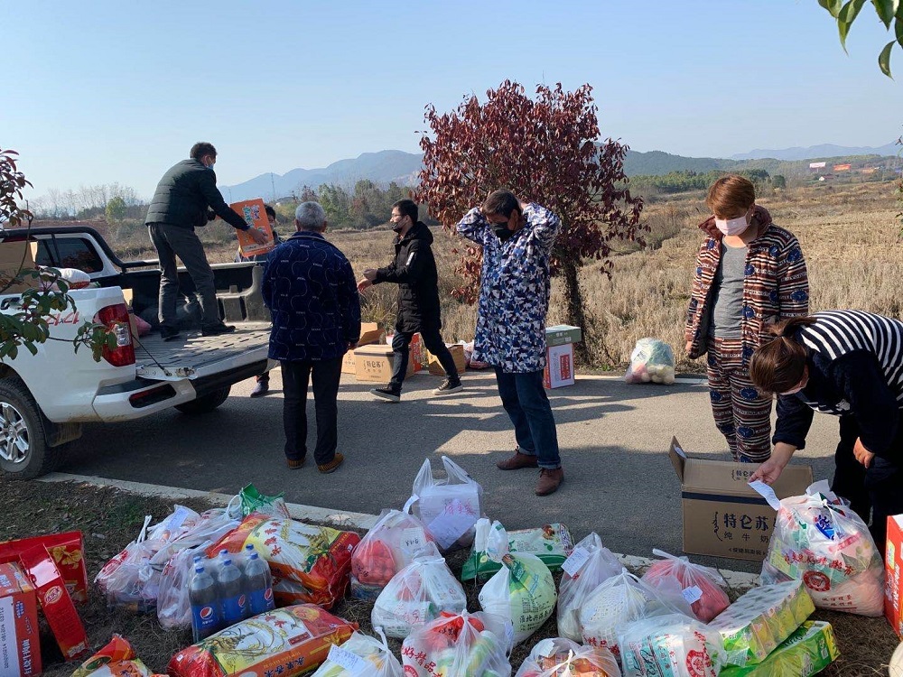 良薦村與陽新一中一同組織愛心募捐活動,捐贈大米、紙巾、蔬菜等生活物資發(fā)給村民,消除疫情從內(nèi)部擴(kuò)散的風(fēng)險隱患。