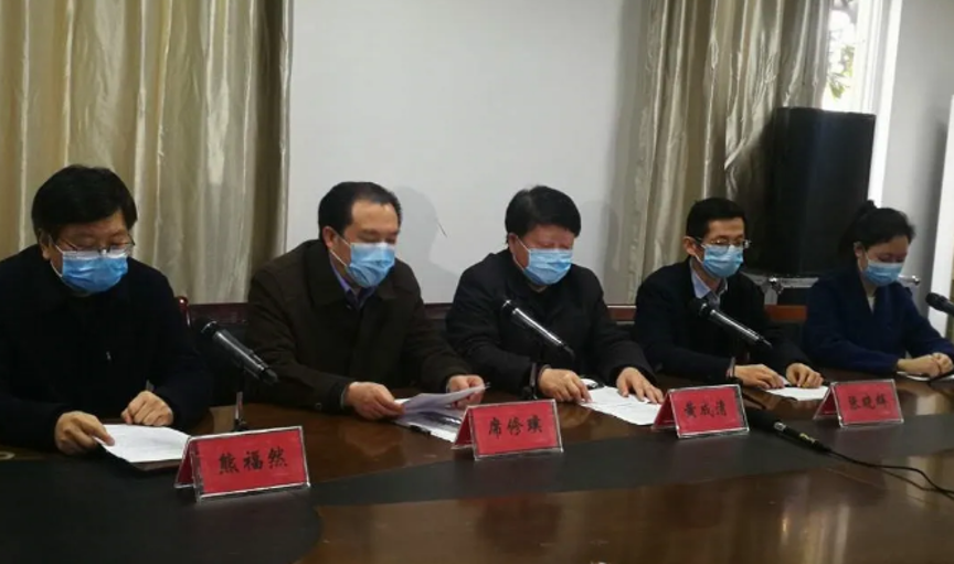 席修璞(左?2)參加新冠肺炎疫情新聞通氣會