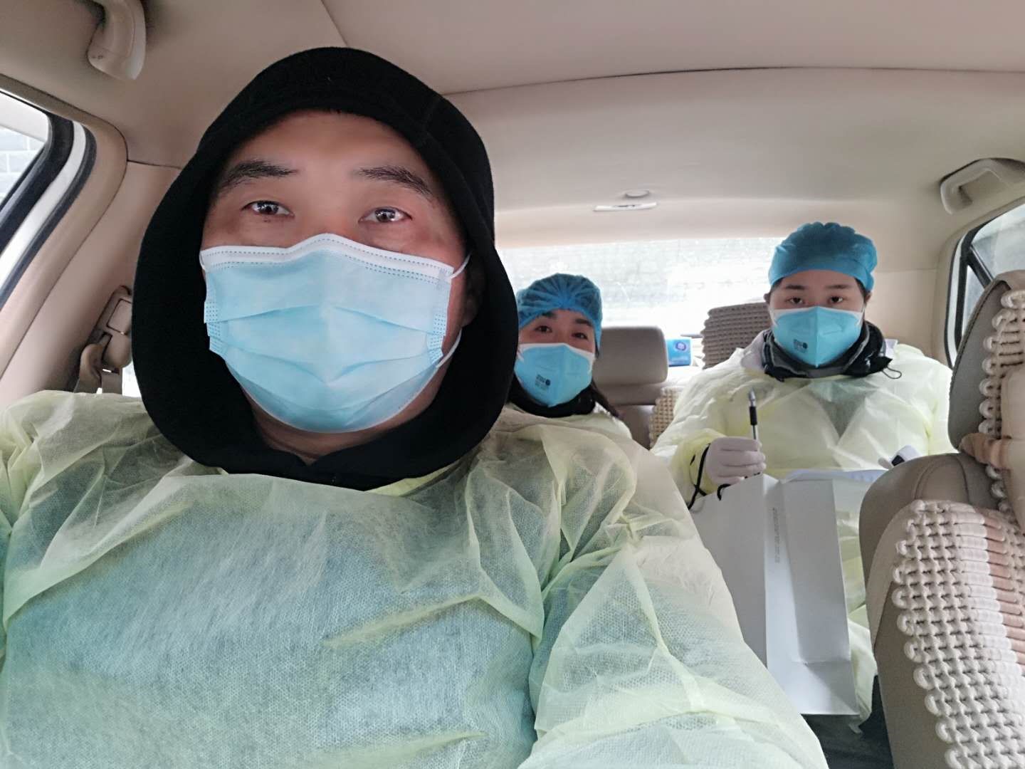 田寧送醫(yī)務人員去為居家觀察者測量體溫