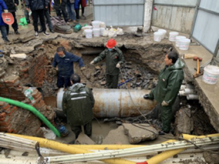 當(dāng)天,是大年三十,寒風(fēng)冷雨。上午8時(shí)許,仙桃市自來(lái)水公司接市民反映,稱實(shí)驗(yàn)初中路口處一主水管破裂。該公司當(dāng)即組織18人的搶修隊(duì)伍趕赴現(xiàn)場(chǎng),并調(diào)集工程車、挖掘機(jī)的機(jī)器設(shè)備抓緊搶修。