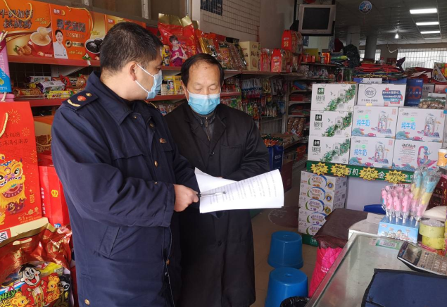 回到龍泉監(jiān)管所的陳兵迅速進(jìn)入工作狀態(tài)。1?月?28?日一大早,他就來到龍泉農(nóng)貿(mào)市場,查看該市場是否關(guān)停休市以及該市場的活禽交易點(diǎn)是否已經(jīng)關(guān)停并消毒。隨后,他與同事一同對龍泉集鎮(zhèn)和小鴉路、土宋路及老漢宜路沿線商超、藥店和旅店、網(wǎng)吧進(jìn)行檢查,要求經(jīng)營者按照《夷陵區(qū)新型冠狀病毒感染的肺炎防控指揮部?2?號令》的規(guī)定暫停營業(yè),并向他們發(fā)放《致夷陵區(qū)廣大經(jīng)營者的一封信》,呼吁商戶嚴(yán)格落實(shí)防控要求,加強(qiáng)自身防護(hù)。