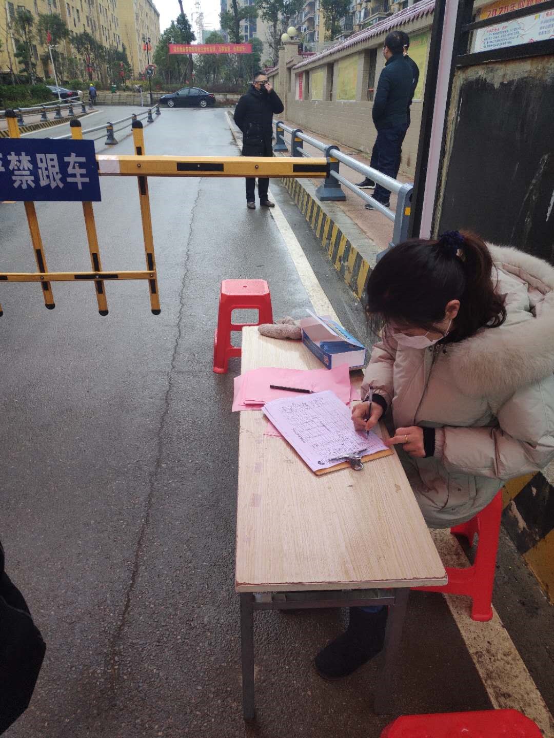 柯麗麗的工作包括前期的值守小區(qū)卡口以及現(xiàn)在對包保的?108?戶居民逐一上門摸排信息、測量體溫、做好政策宣傳工作。