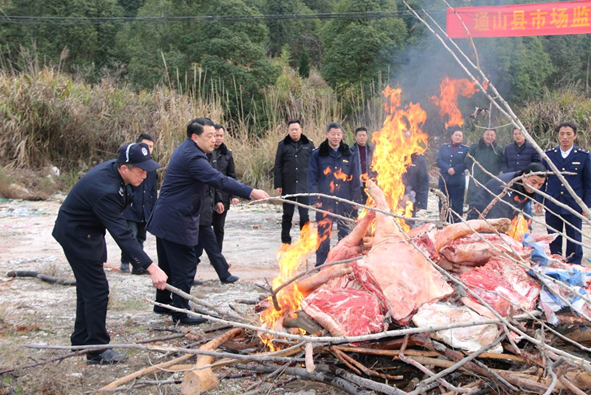 通山縣市場監(jiān)管局銷毀"白條肉"