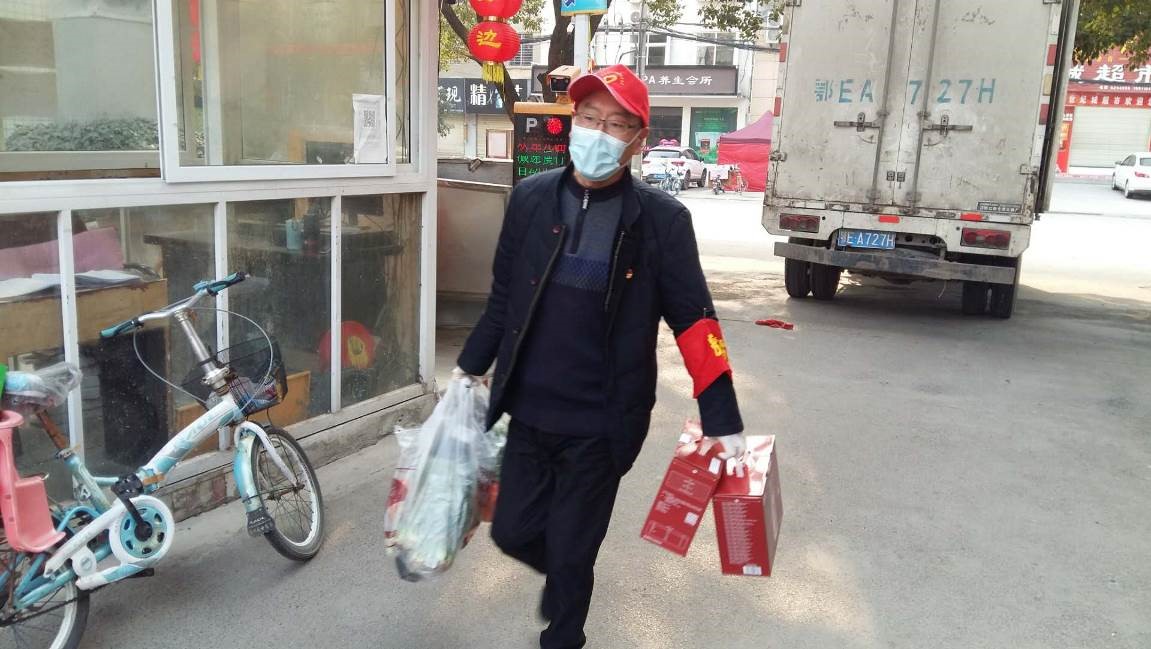 該局黨組成員、副局長樊甫學(xué)為小區(qū)居民配送物資