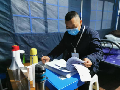 2月15日,天氣驟變,風(fēng)雪交加,在孫學(xué)軍值守的社區(qū)卡點(diǎn),臨時帳篷被大風(fēng)吹垮,他和另兩名工作人員不等不靠,冒著風(fēng)雪重新搭建帳篷,找來臨時辦公桌椅和簡易取暖設(shè)施繼續(xù)值守。一份發(fā)涼的盒飯,溫暖了所有值守人員的身體,一盞不眠的燈光,照亮的是社區(qū)居民對勝利的期盼。孫學(xué)軍深知,只要帳篷在,黨員在,黨旗在,社區(qū)居民的安全健康就在。