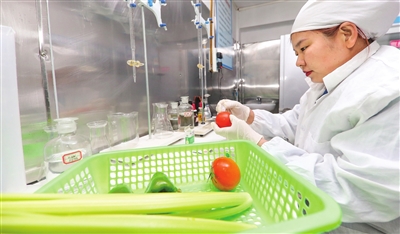 對選購的新鮮蔬菜、肉類等進行農殘化驗,把好每一關。